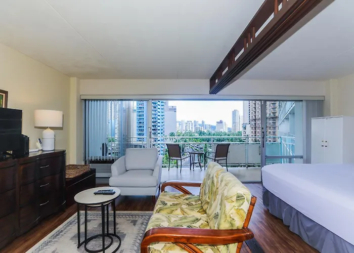 The 1-bedroom Ilikai Tower 701 City View 1Br Honolulu villa offers swift access to various city sites, such as Hilton Hawaiian Village Fireworks, situated just 6 minutes' walk away.